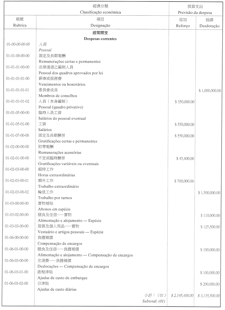 經濟分類 開支名稱 追加
