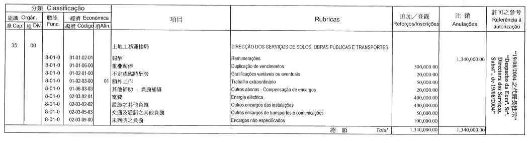 根據九月二十七日第53/93/M號法令第十五條第二款及第十九條規定,茲公佈社會文化司司長於二零零四年七月二十九日批准,並由經濟財政司司長於二零零四年八月十七日確認的澳門大學二零零四年度本身預算之第三次修改: