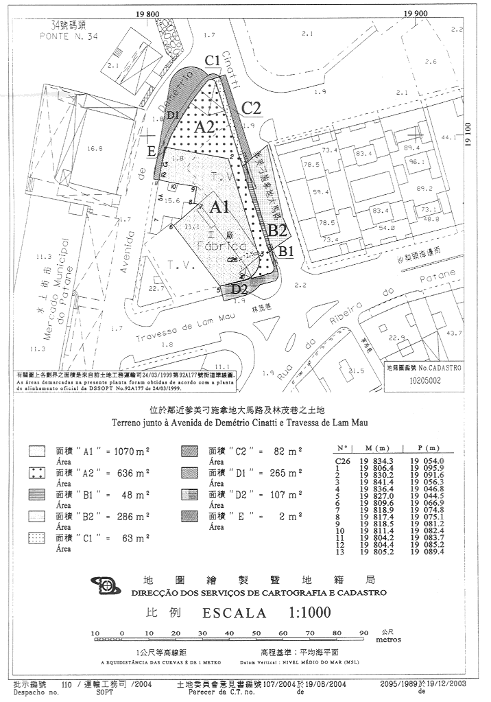 四、有關土地以字母“A1”及“A2”標示在地圖繪製暨地籍局於二零零三年十二月十九日發出的第2095/1989號地籍圖中。