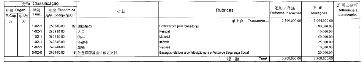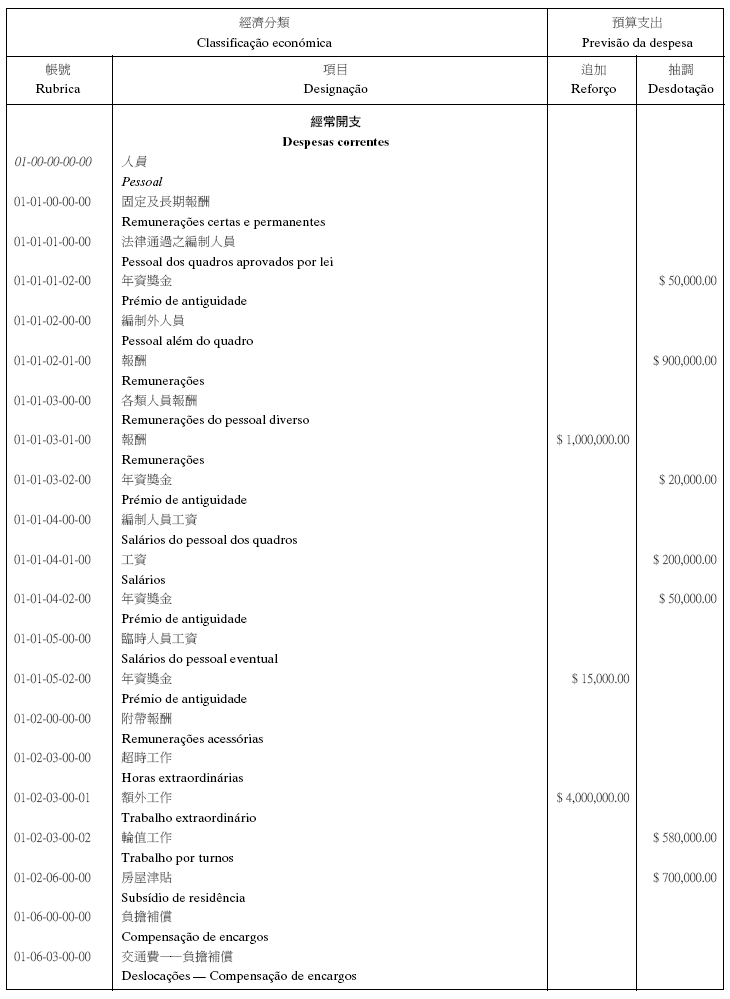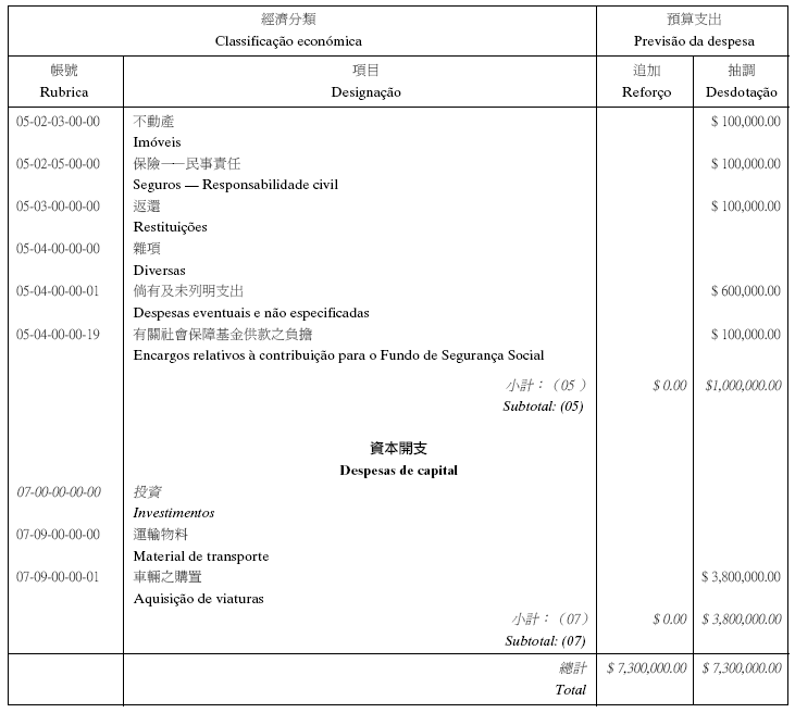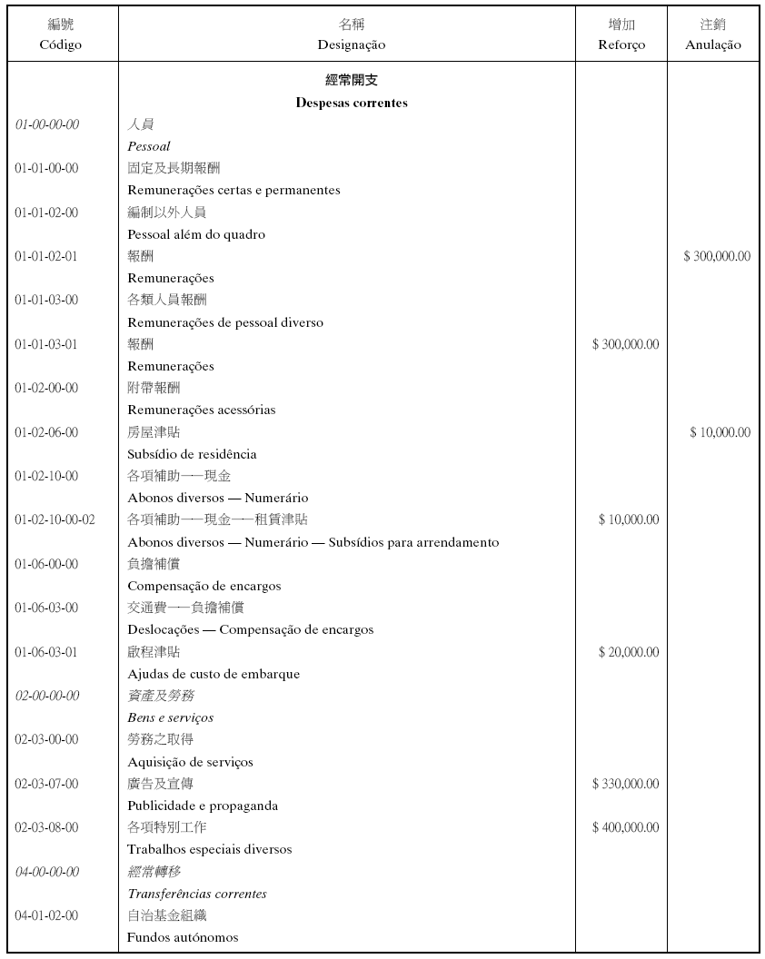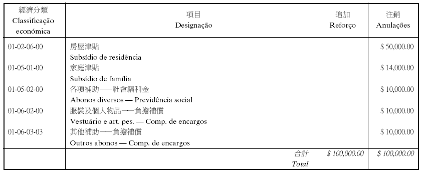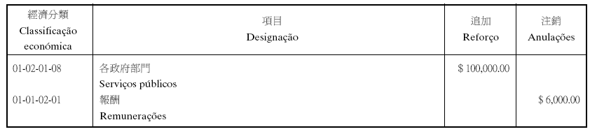 | 經濟分類 | 開支名稱 | 追加 | 取消 |