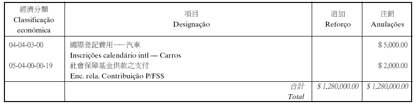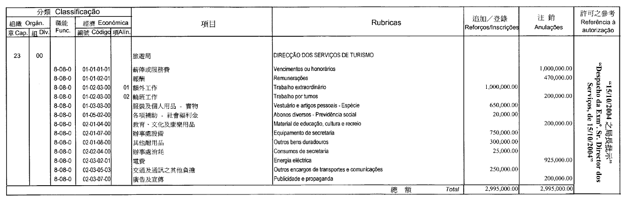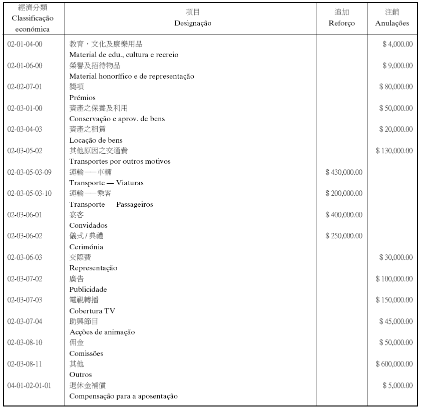 根據九月二十七日第53/93/M號法令第十九條規定,現刊登有關二零零四年度澳門大賽車獨立預算之修改,該修改獲社會文化司司長在二零零四年十月八日批示核准: