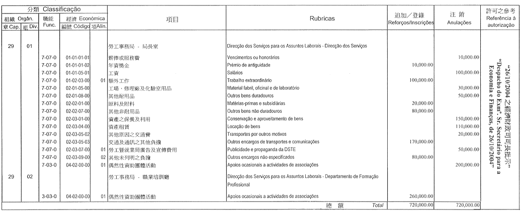 根據九月二十七日第53/93/M號法令第十九條規定,現刊登有關二零零四年度澳門大賽車獨立預算之修改,該修改獲社會文化司司長在二零零四年十一月十八日批示核准: