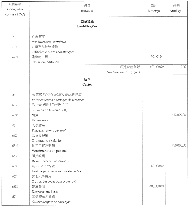 | 經濟分類 | 項目 | 注銷 | 追加 |