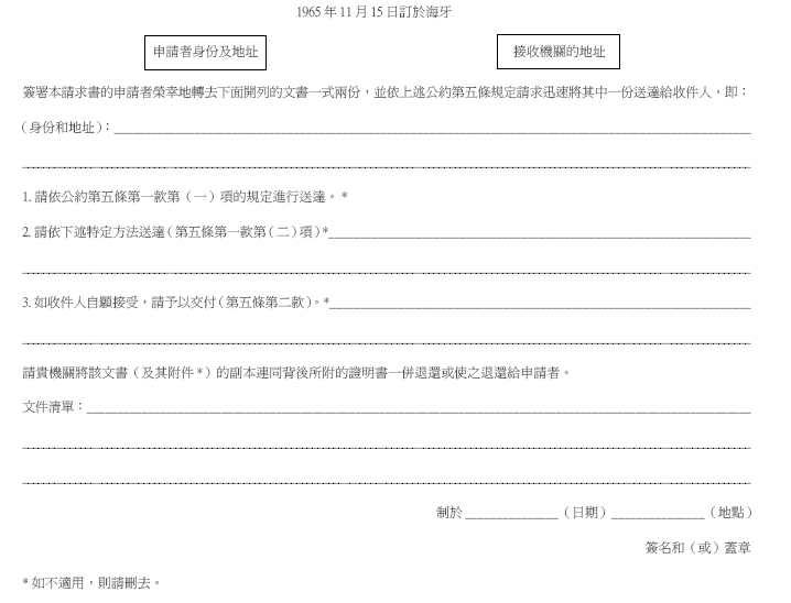 關於向國外送達民事或商事司法文書和司法外文書公約