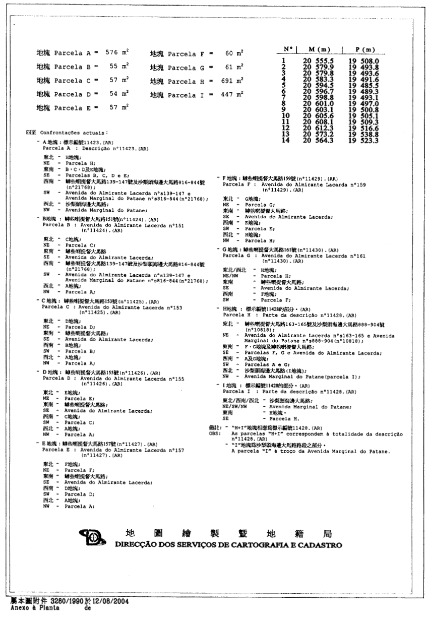 二、上述土地在地圖繪製暨地籍局於二零零四年八月十二日發出的第3280/1990號地籍圖中以字母 “A”、“B”、“C”、 “D”、“E”、“F”、“G”、“H”及“I”標示。