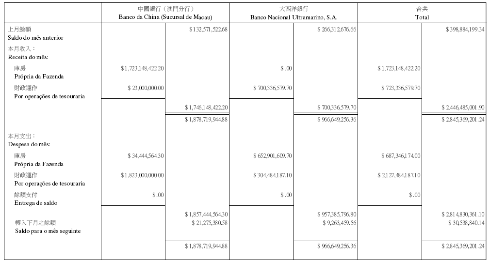 備註:庫房本身收入中的澳門幣$ 348,669.70為從支付中扣減之退回款額。