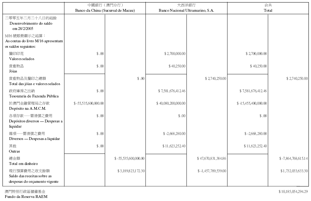 此外,本基金亦遵照審計署二月二十二日第2/2001號批示的要求,編制二零零三年度的帳目並寄給審計署。