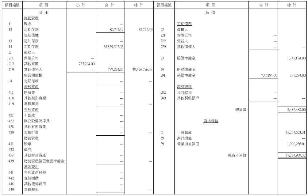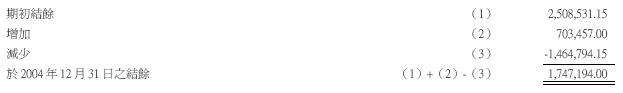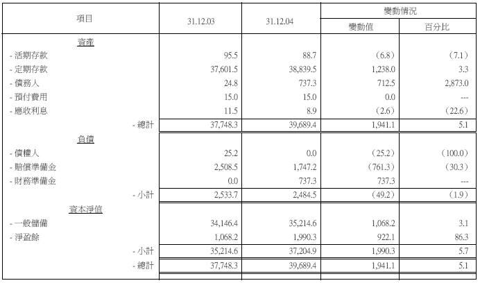 截至二零零四年年底,本基金的資產負債表情況可概括如下: