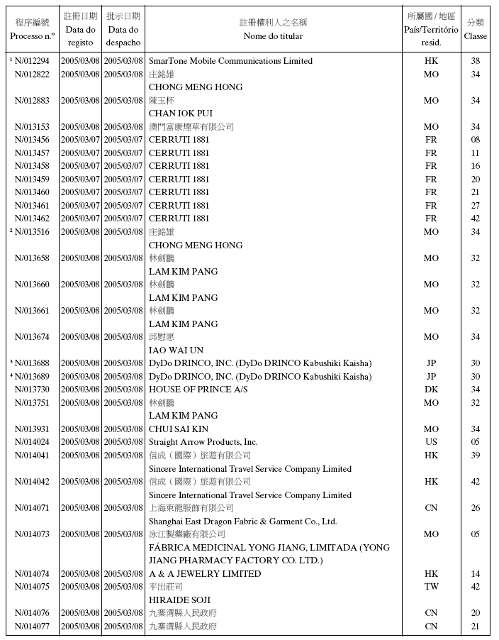 2005年1月5日第1期,第二組之《澳門特別行政區公報》: