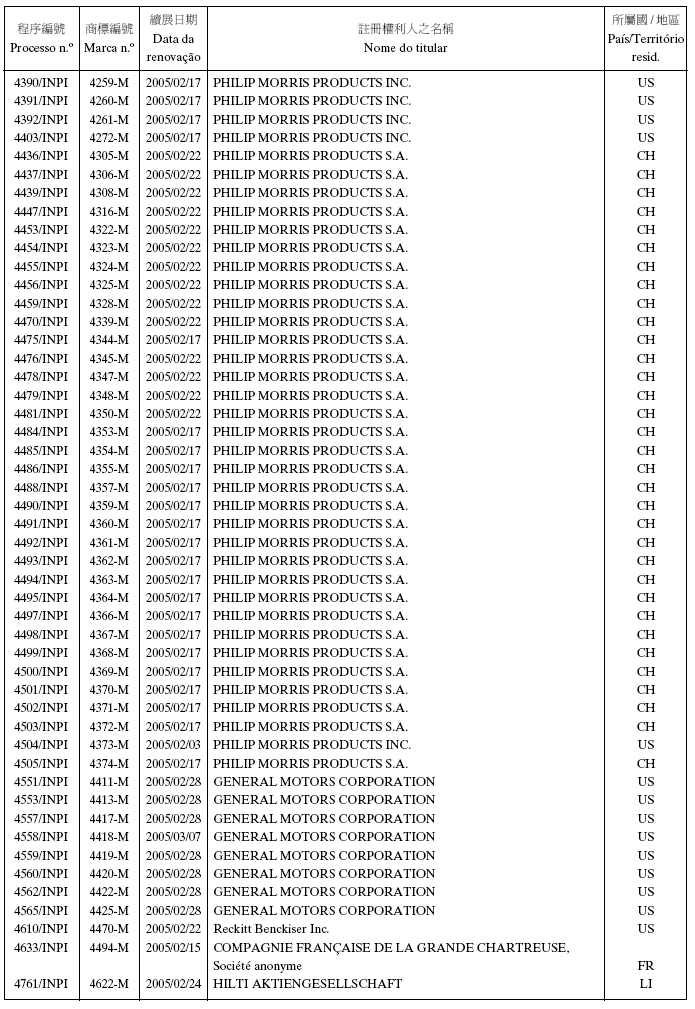 商標編號:N/16097 類別: 34