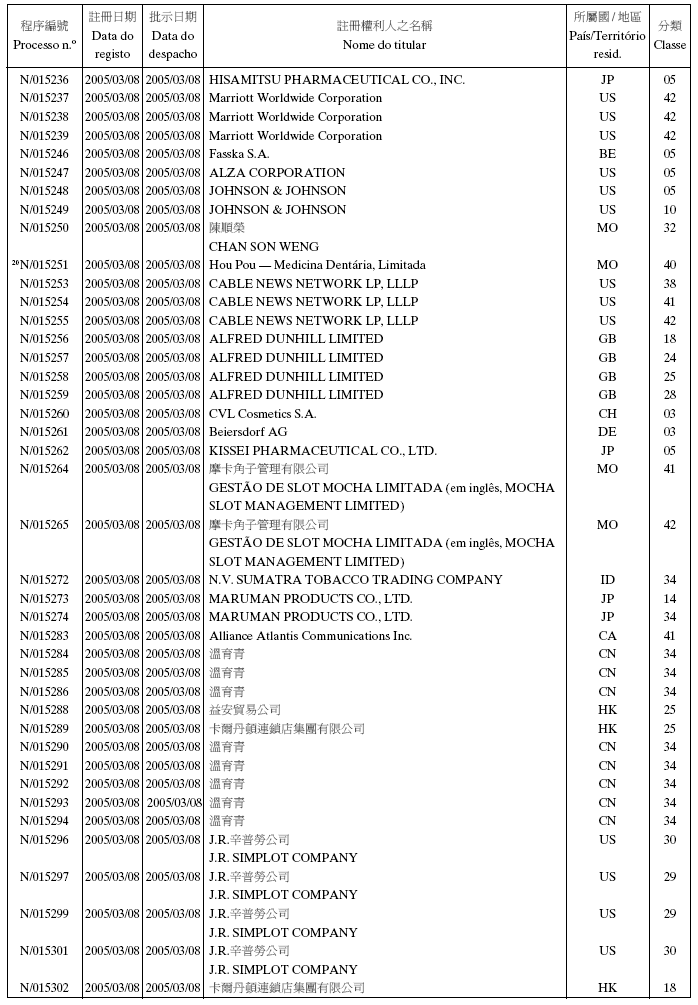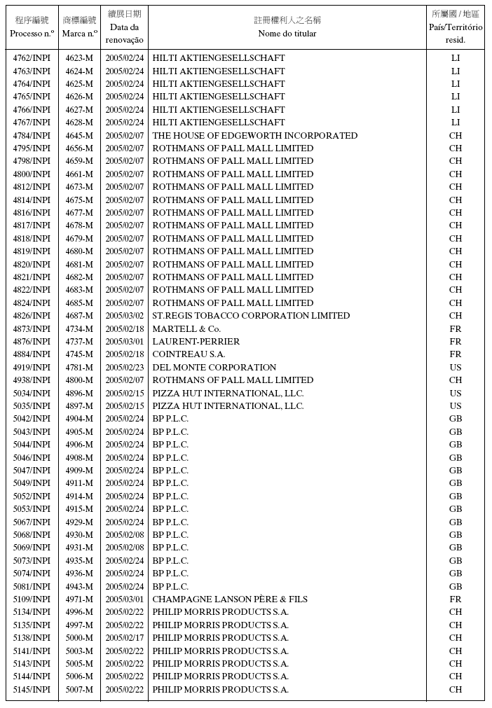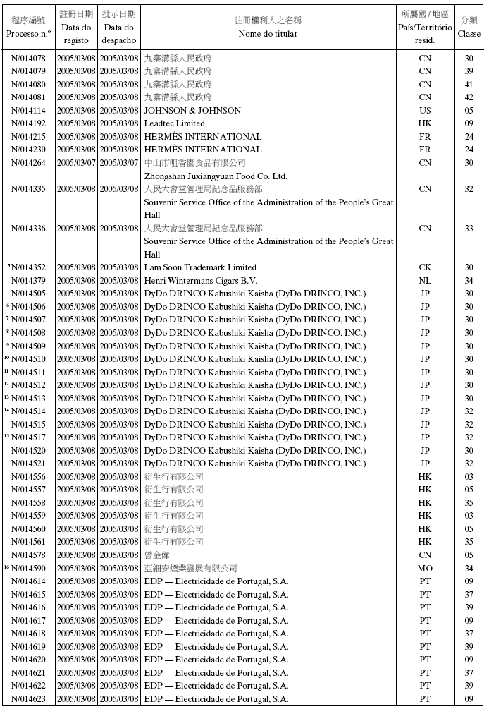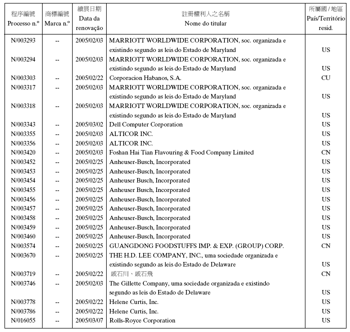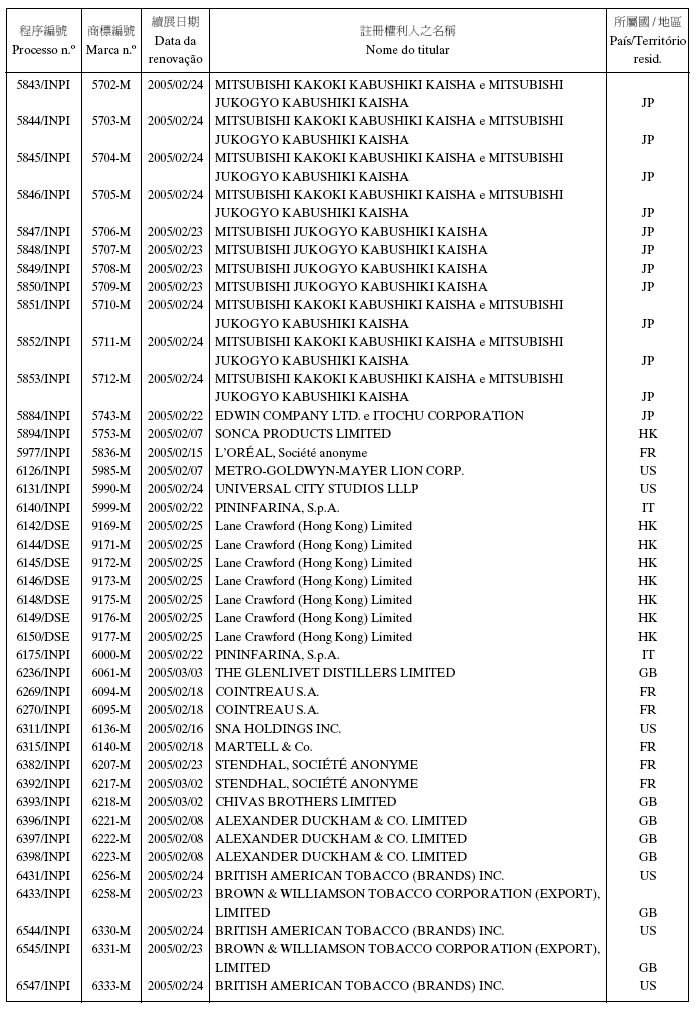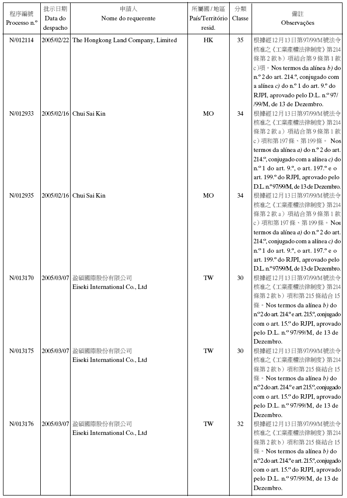 2005年2月2日第5期,第二組之《澳門特別行政區公報》: