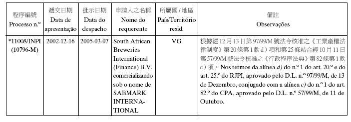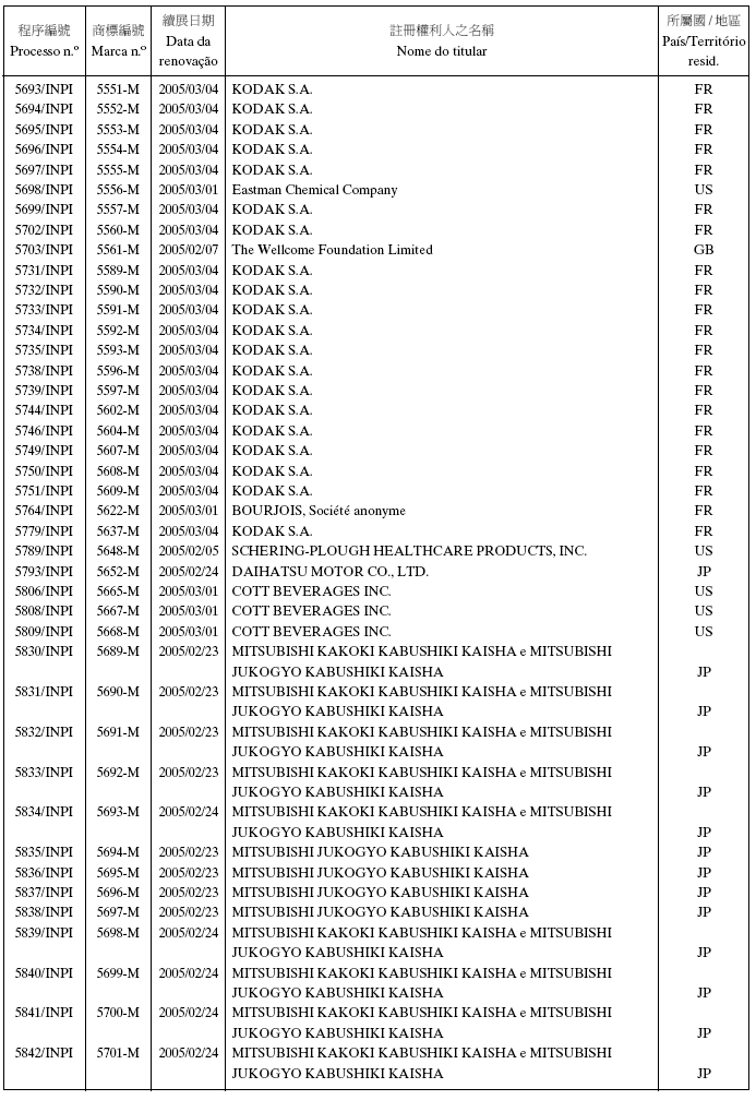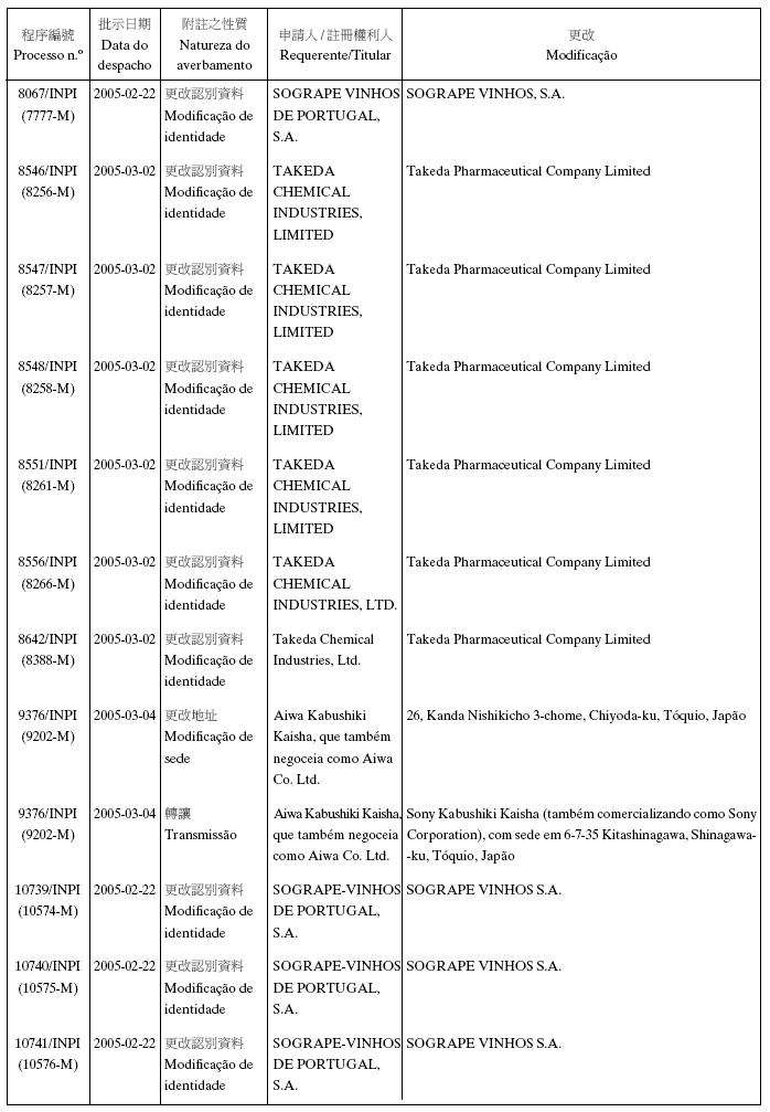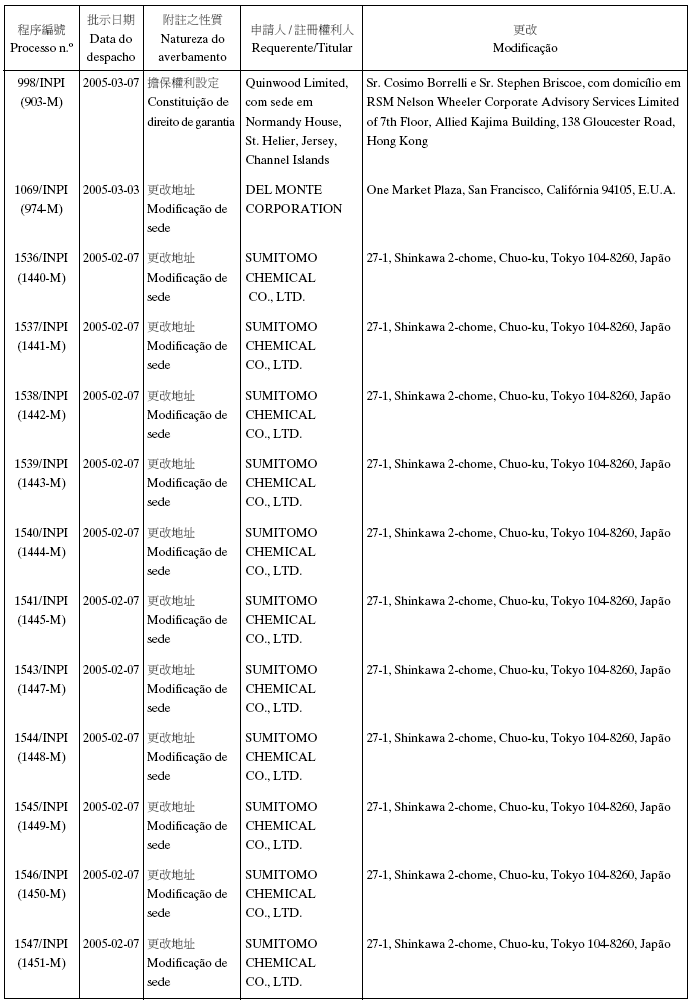 商標編號2491-M,2492-M,2493-M,2494-M,2499-M及2509-M——申請人的公司地址原文為:“Burmah…”;