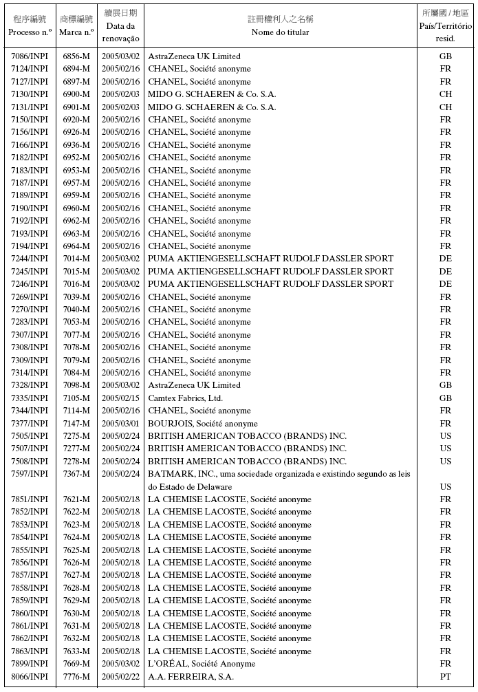 商標編號:N/16083 類別: 3