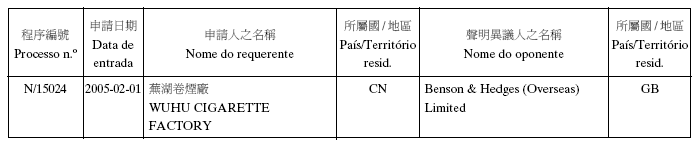 商標編號:N/16087 類別: 34