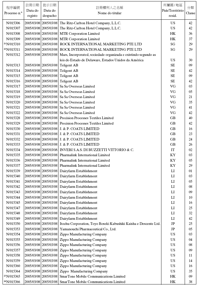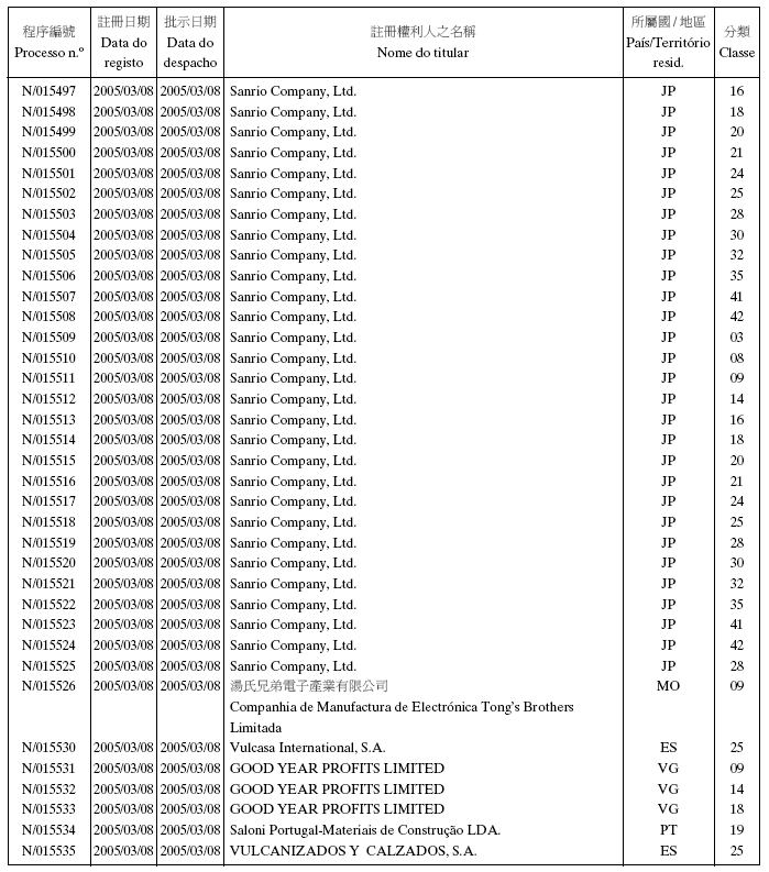商標編號:N/16068 類別: 35