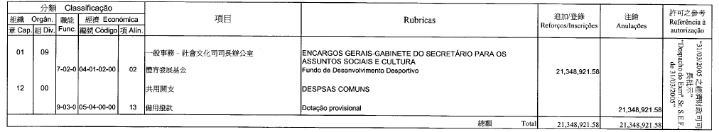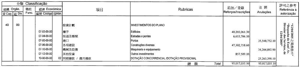 根據九月二十七日第53/93/M號法令第十九條規定,公佈經運輸工務司司長於二零零五年四月八日批示核准的有關二零零五年度政府船塢本身預算的第一次修改: