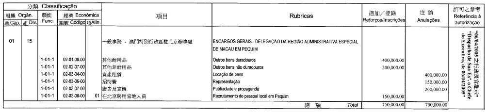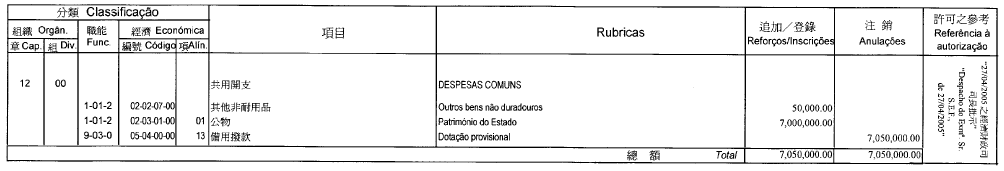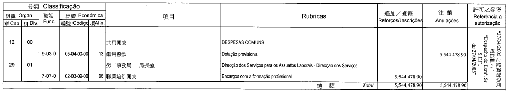 按照十二月二十一日第85/89/M號法令第四條第二款(經六月八日第37/91/M號法令第二條修訂)及第四款之規定,張敏玉及José Tomás Cardoso das Neves在本局分別擔任行政暨財政廳廳長及會計科科長之定期委任獲得續期一年,各自二零零五年六月十一日及六月十七日起生效。