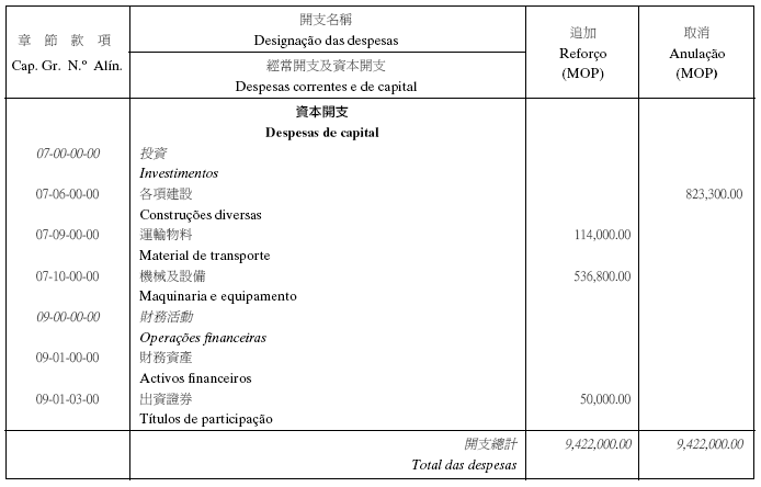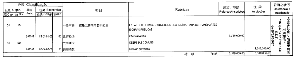 根據九月二十七日第53/93/M號法令第十九條之規定,茲公佈由運輸工務司司長於本年四月二十九日批示所核准之港務局暨水警稽查局福利會二零零五年度本身預算之修改: