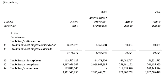 Balanço anual em 31 de Dezembro de 2004