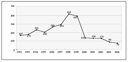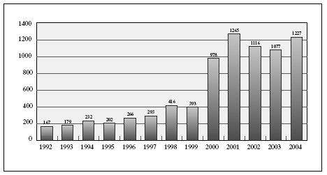 EVOLUÇÃO DO NÚMERO DE QUEIXAS RECEBIDAS ENTRE 1992 E 2004