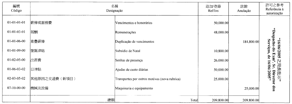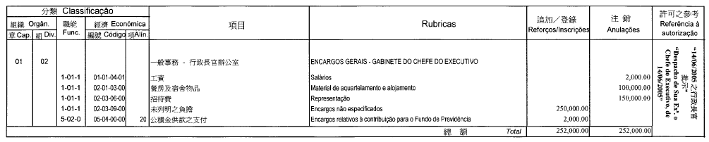 根據九月二十七日第53/93/M號法令第十八及十九條規定,現刊登有關二零零五年度環境委員會本身預算之修改,該修改獲運輸工務司司長在二零零五年五月二十六日批示核准及獲經濟財政司司長在二零零五年六月十七日確認: