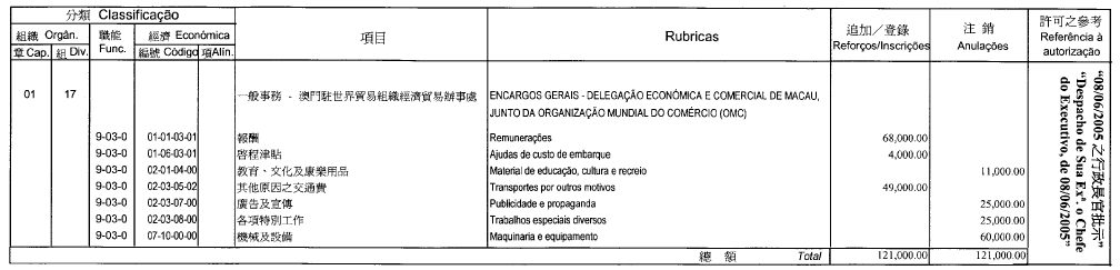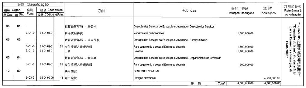 根據九月二十七日第53/93/M號法令第十九條的規定,公佈由社會文化司司長於二零零五年六月二十日批准的澳門大學二零零五年財政年度本身預算之第三次修改: