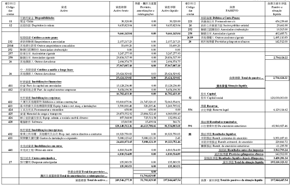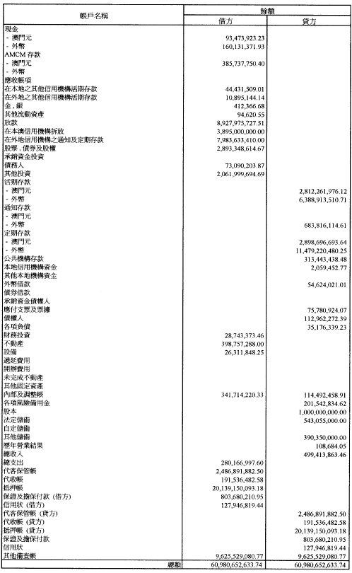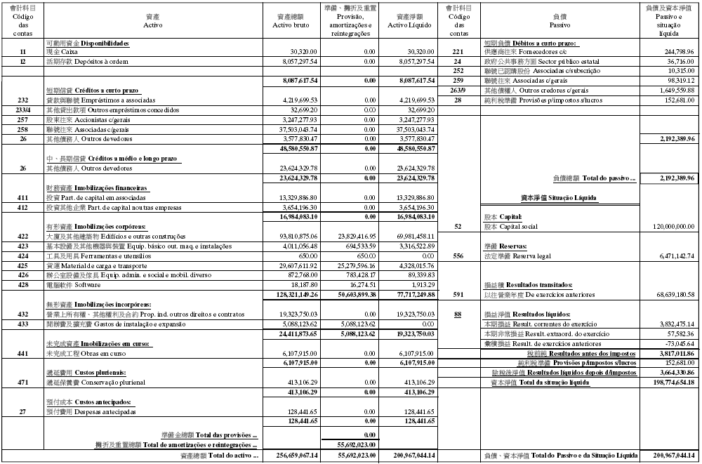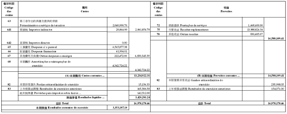 鑑於發現刊載於二零零四年十月六日《澳門特別行政區公報》第四十期的二零零三年資產負債表以及損益表的內容有誤,我們特此更正,並重新公佈。