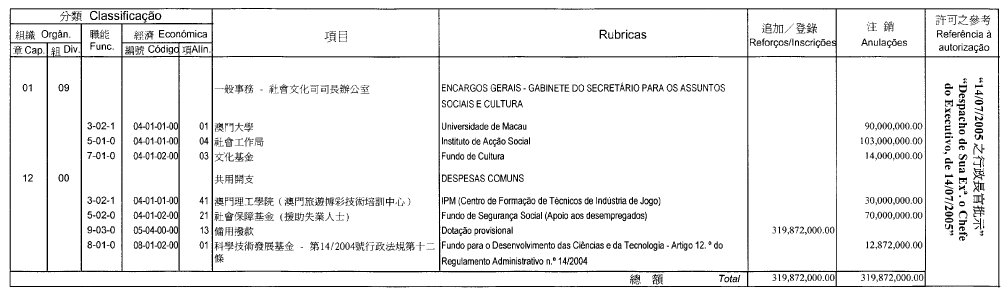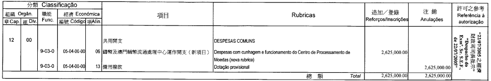 ®Ú¾Ú²Ä31/2000¸¹¦æ¬Fªk³W²Ä¤G¤Q¤T±ø¤Î¤E¤ë¤G¤Q¤C¤é²Ä53/93/M¸¹ªk¥O²Ä¤Q¤E±ø¤§³W©w¡A¯÷±N¥N·G¬F±Mû©ó¤G¹s¹s¤¦~¤C¤ë¤G¤Q¤K¤é®Ö㤧¤G¹s¹s¤¦~·G¬F¤½¸p¥»¨¹wºâ²Ä01/CCAC/2005¸¹¹wºâ×§ï¥Zµn¦p¤U¡G