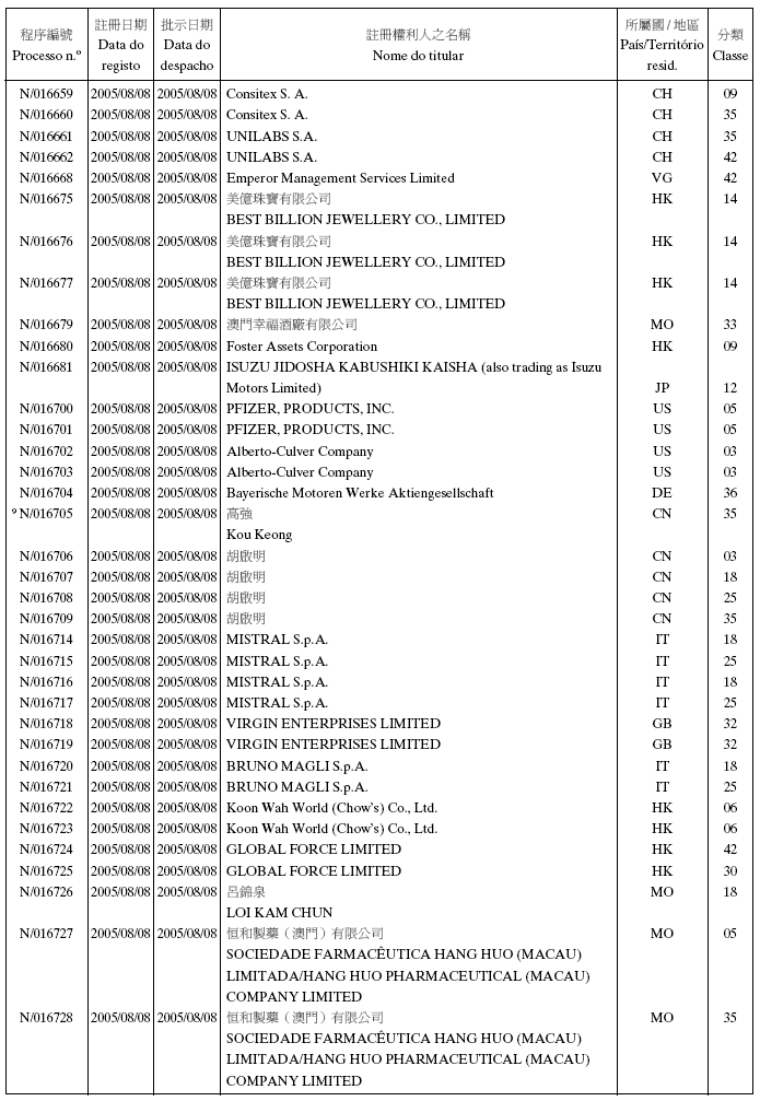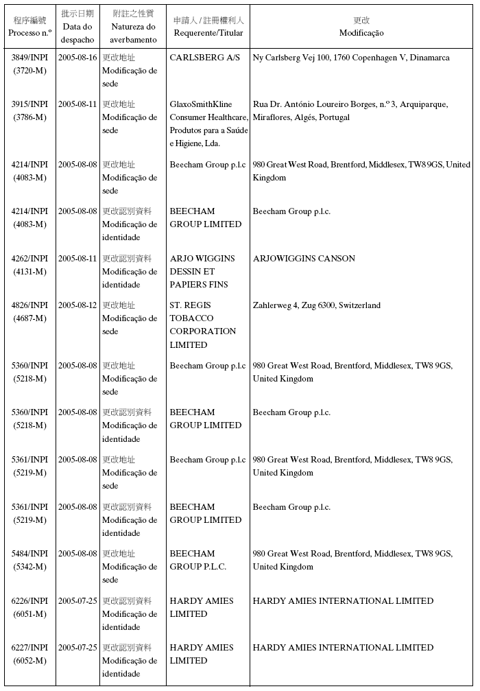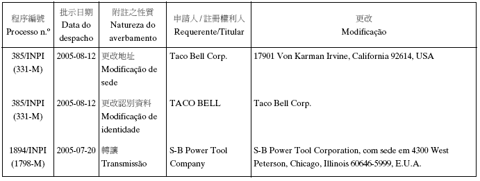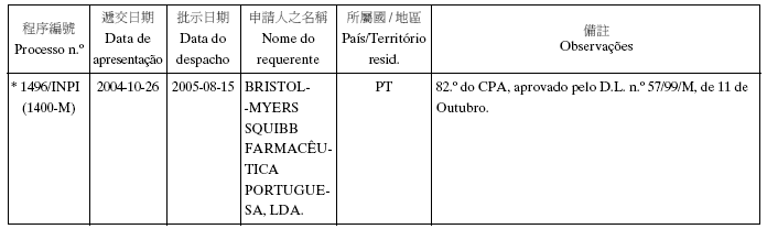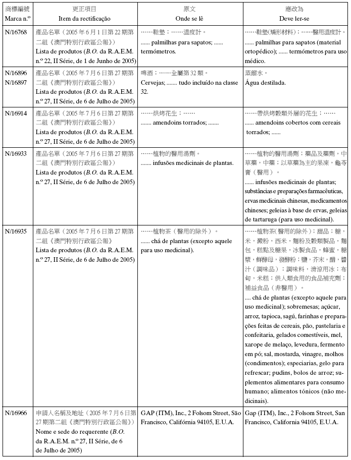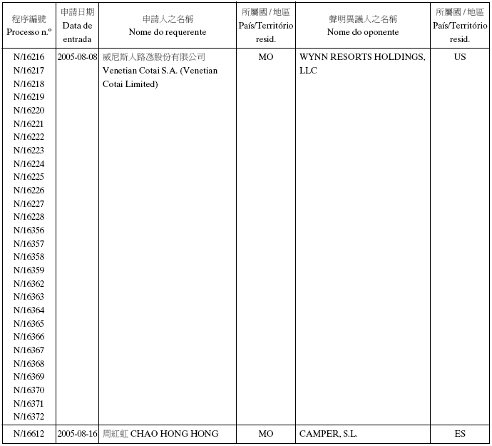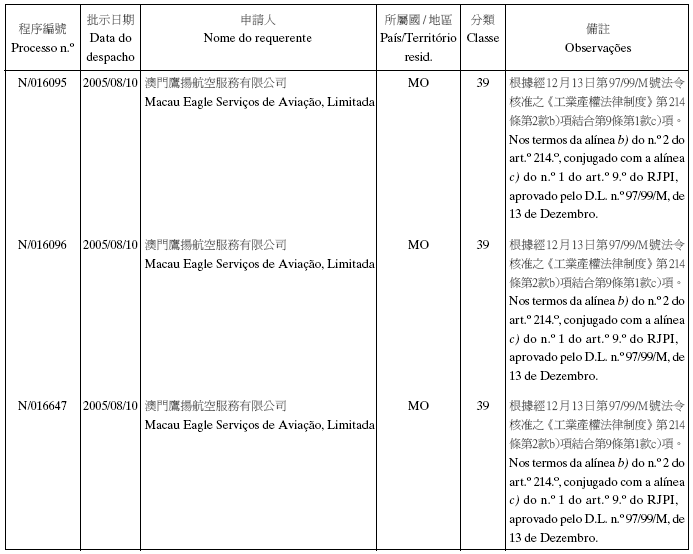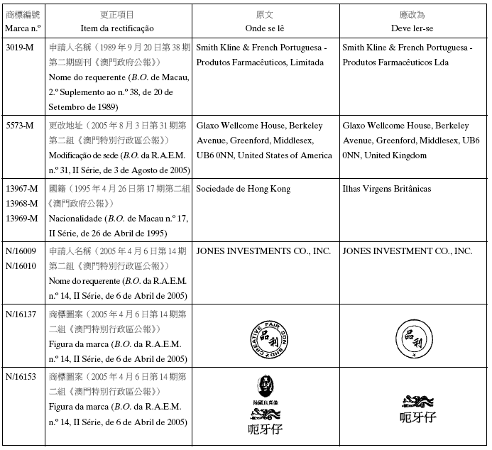 Em conformidade com a alínea d) do n.os 1 e 2 do artigo 10.º do RJPI, aprovado pelo Decreto-Lei n.º 97/99/M, de 13 de Dezembro e de acordo com os artigos 275.º a 277.º do referido diploma, cabe recurso para o Tribunal Judicial de Base, dos despachos abaixo mencionados, no prazo de um mês a contar da data desta publicação.