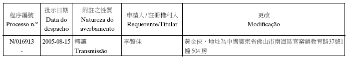 Requerente: LAM CHOI KUAI, Sede: 澳門黑沙灣慕拉士大馬路29號澳門工業中心14樓A.