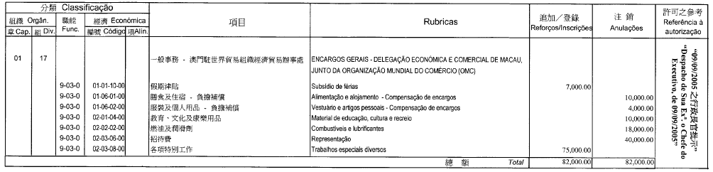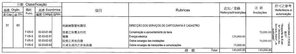 根據九月二十七日第53/93/M號法令第十九條規定,茲公佈運輸工務司司長於二零零五年九月十四日批示核准的民航局二零零五年財政年度本身預算之第三修改: