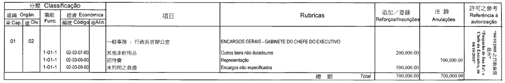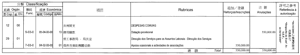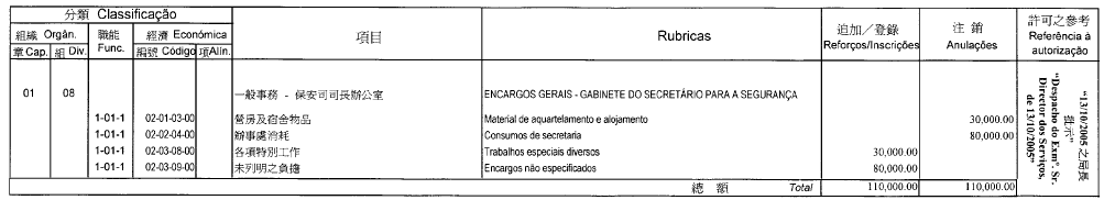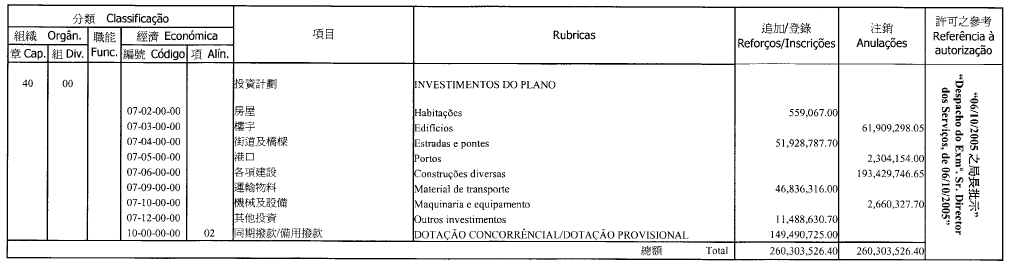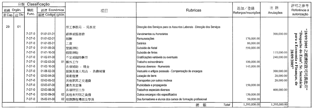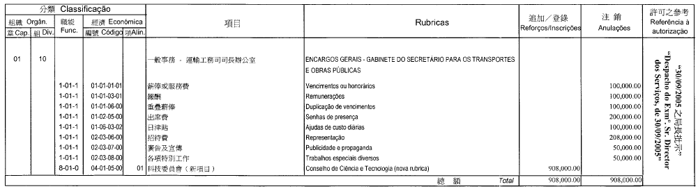 Gabinete do Secretário para a Economia e Finanças, aos 7 de Outubro de 2005. — A Chefe do Gabinete, Lok Kit Sim.