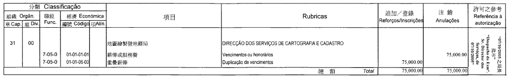 Por despacho do director dos Serviços, de 22 de Setembro de 2005: