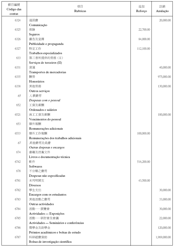 根據九月二十七日第53/93/M號法令第十九條之規定,現刊登有關澳門理工學院二零零五年度本身預算之第四修改,該修改獲社會文化司司長在二零零五年十月二十六日之批示核准: