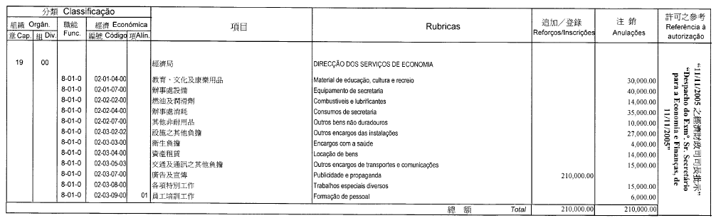 Por despacho de S. Ex.ª o Chefe do Executivo, de 1 de Novembro de 2005: