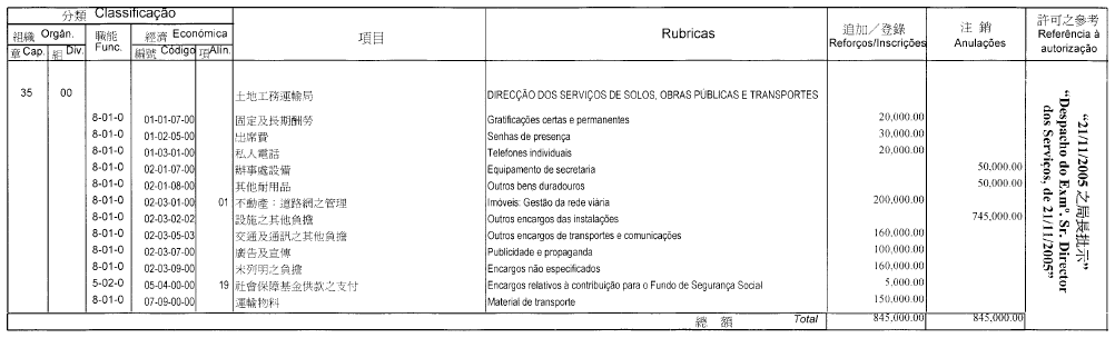 Por despacho do director dos Serviços, de 9 de Novembro de 2005: