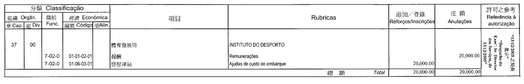| 02.03.09.01.06 | 澳門高爾夫球公開賽 | $ 40,000.00 | |