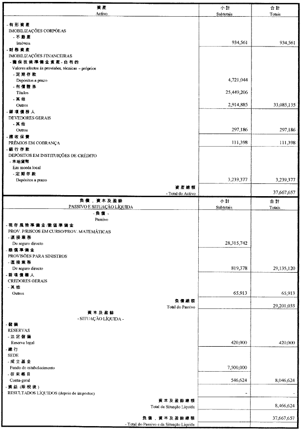 Examinámos, de acordo com as Normas de Auditoria emanadas de Hong Kong Institute of Certified Public Accountants e Normas de Auditoria de Macau, as demonstrações financeiras da Crown Life Insurance Company — Sucursal de Macau, referentes ao exercício que terminou em 31 de Dezembro de 2004 e a nossa opinião sobre as demonstrações financeiras está expressa, sem reservas, no nosso relatório datado de 21 de Fevereiro de 2005.