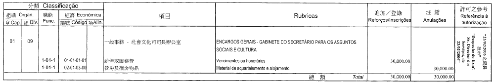 Por despacho do Ex.mo Senhor Secretário para os Assuntos Sociais e Cultura, de 30 de Dezembro de 2005: