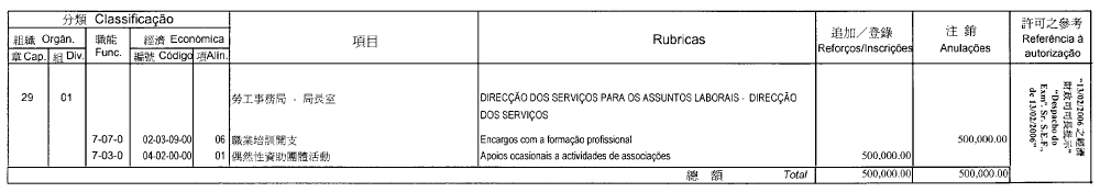 Bacharel Wong Man Fu — renovada a comissão de serviço, pelo período de um ano, como chefe do Sector Administrativo e Financeiro deste Gabinete, nos termos do artigo 4.º do Decreto-Lei n.º 85/89/M, de 21 de Dezembro, na redacção do Decreto-Lei n.º 25/97/M, de 23 de Junho, a partir de 3 de Abril de 2006.