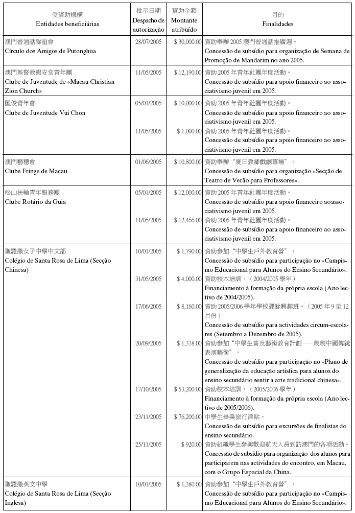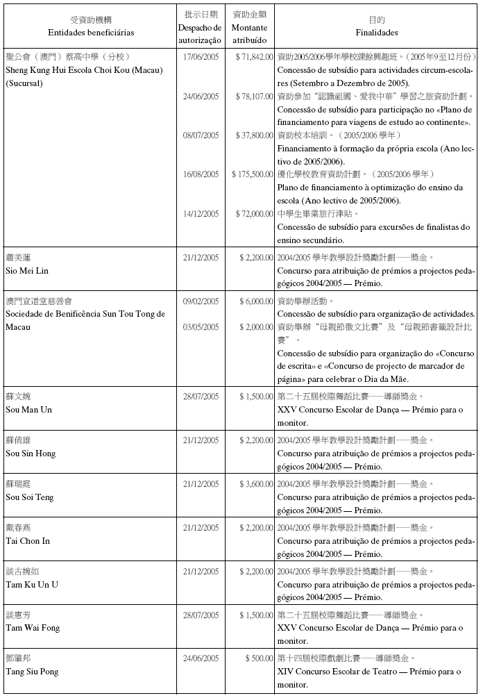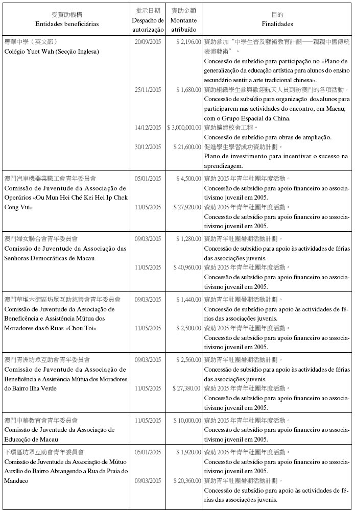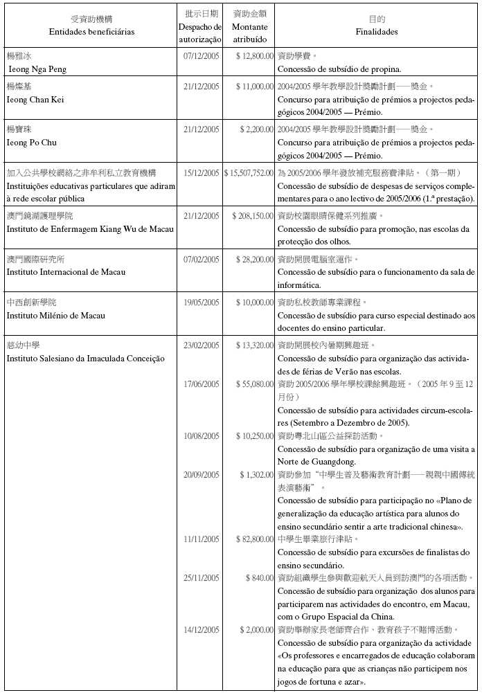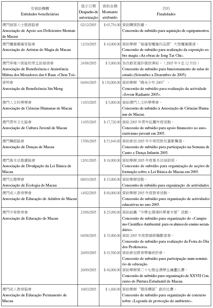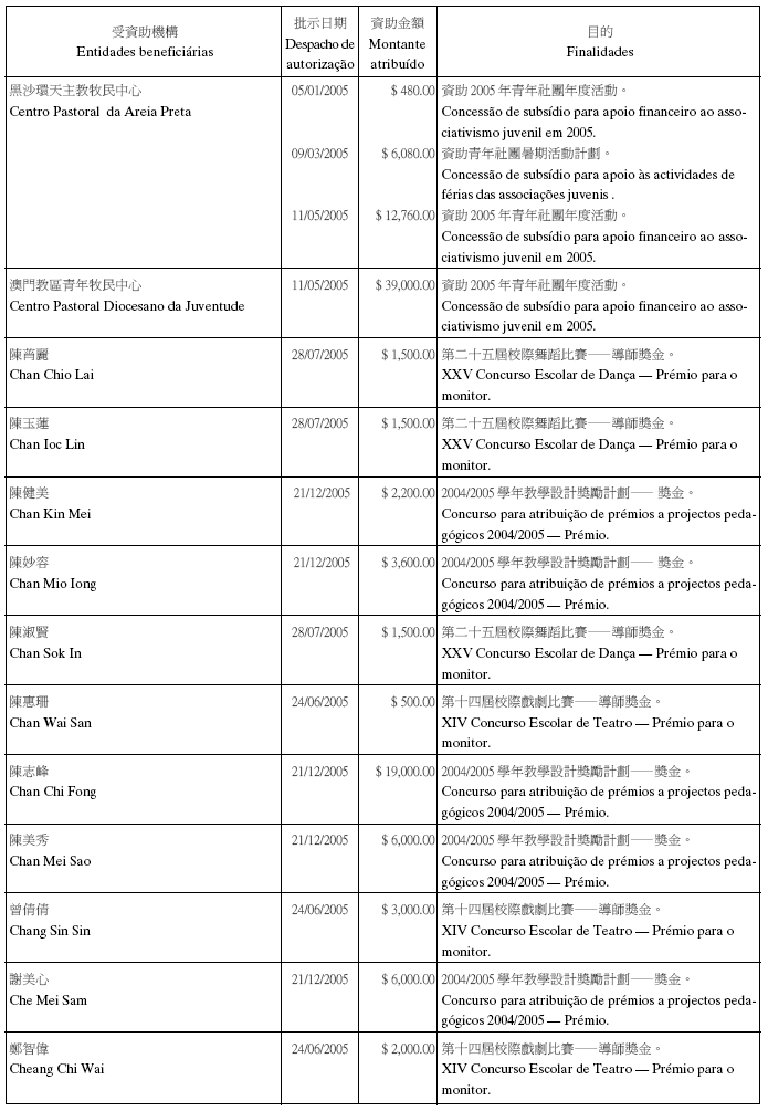 二零零五年十二月份澳門特別行政區總收支一覽表