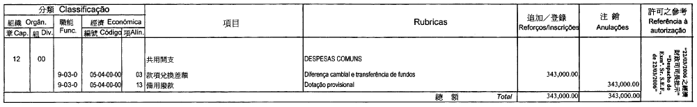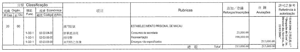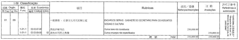 根據九月二十七日第53/93/M號法令第十九條規定,現刊登有關二零零六年度旅遊基金本身預算之第二次預算修改,該修改獲社會文化司司長在二零零六年三月二十三日批示核准: