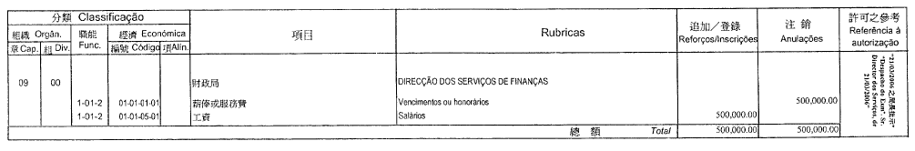 Patrícia Gomes Ritchie,管理委員會第一職階二等文員,薪俸230點,自二零零六年一月二十六日起生效;