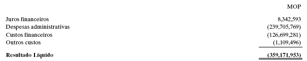No ano de 2005, a Sociedade esteve em fase de pré-abertura e por essa razão não registou quaisquer receitas no decurso do ano para lá dos juros dos depósitos bancários que possui. O financiamento da actividade da Sociedade no ano de 2005 foi assegurado através de capital próprio e de empréstimos dos accionistas. Durante o ano de 2005 a Sociedade concentrou a sua actividade na concepção do Hotel/Casino em construção na península de Macau do qual foi lançada a primeira pedra a 1 de Junho de 2005. De igual modo, no ano de 2005 iniciou-se o recrutamento de quadros qualificados de modo a preparar a futura operação. O balanço e a demonstração de resultados que de seguida se publicam sintetizam os resultados da Sociedade no ano de 2005.