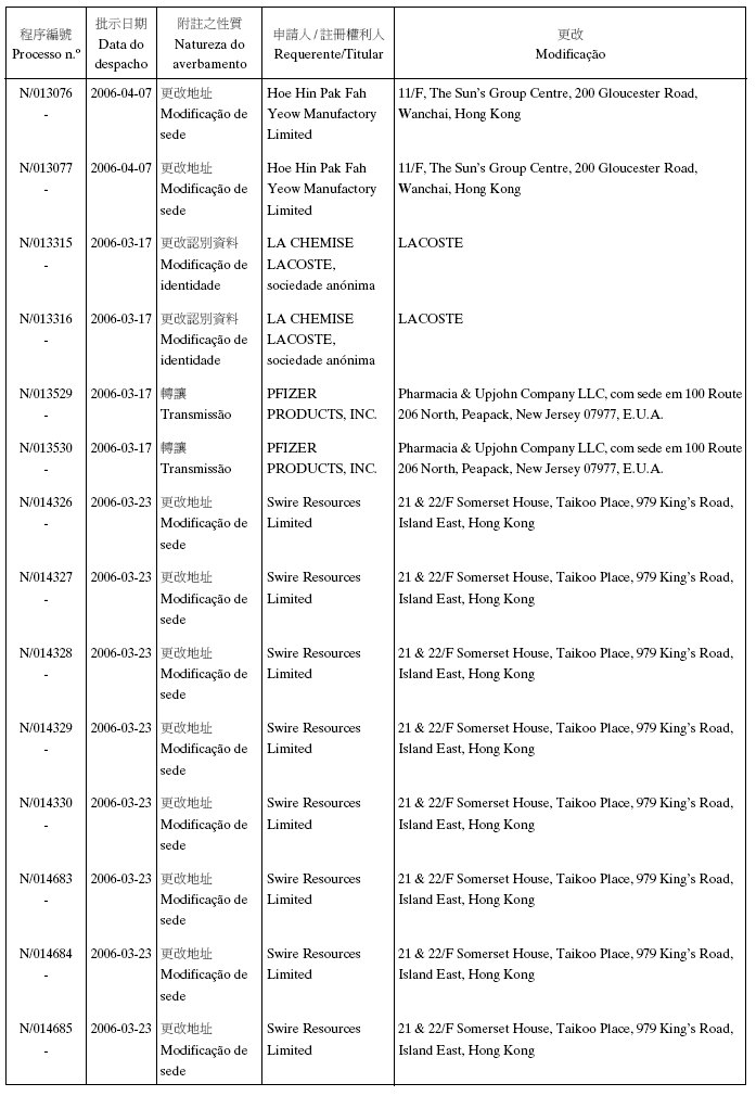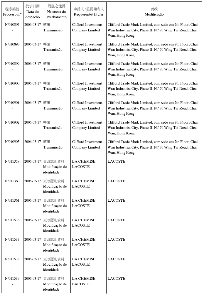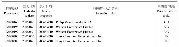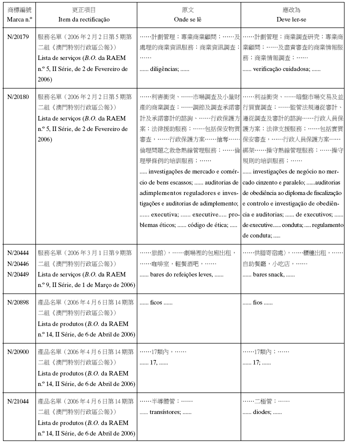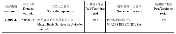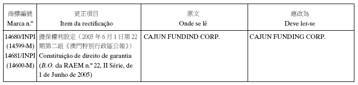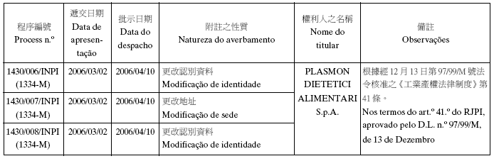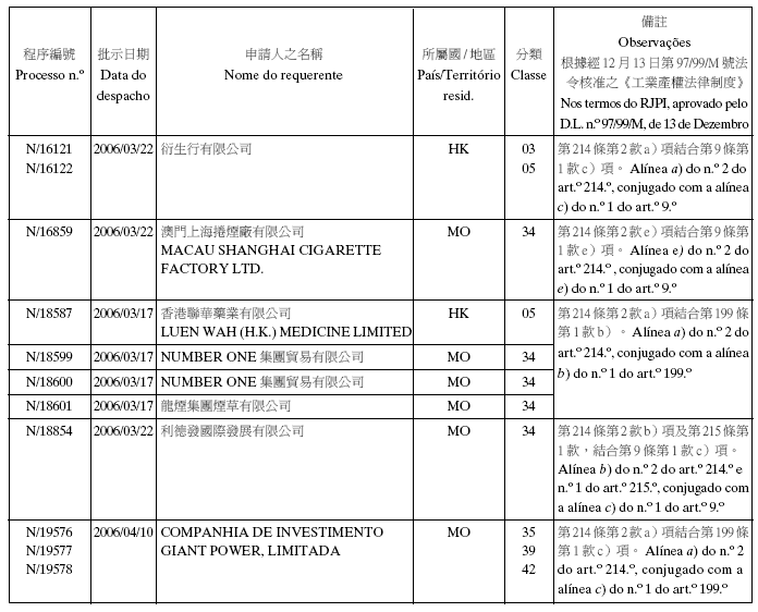 根據經十二月十三日第97/99/M號法令核准之《工業產權法律制度》第十條及第二百四十三條之規定,公布下列在澳門特別行政區提出的營業場所之名稱及標誌註冊申請,並按照相同法規第二百四十四條,由通告公布之日起計兩個月期限內提出聲明異議。