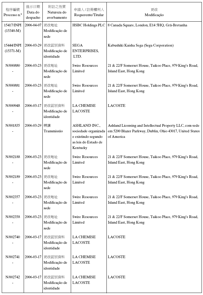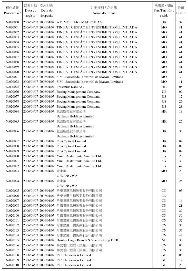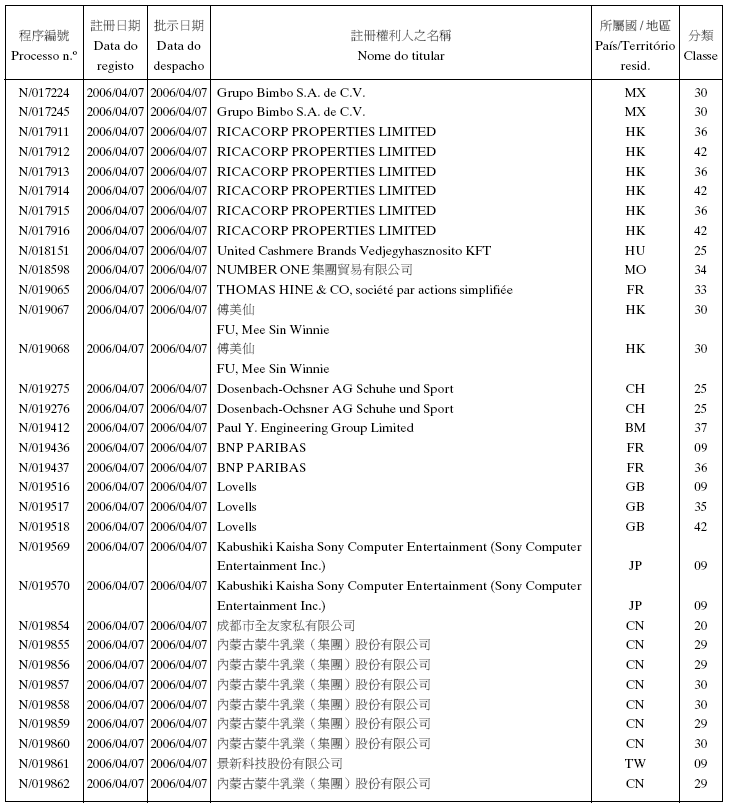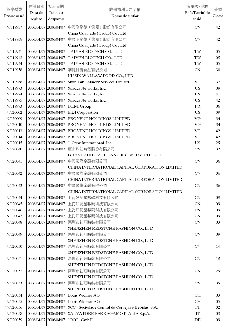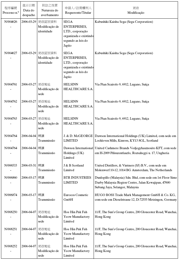 根據經十二月十三日第97/99/M號法令核准之《工業產權法律制度》第十條及第二百四十三條之規定,公布下列在澳門特別行政區提出的營業場所之名稱及標誌註冊申請,並按照相同法規第二百四十四條,由通告公布之日起計兩個月期限內提出聲明異議。