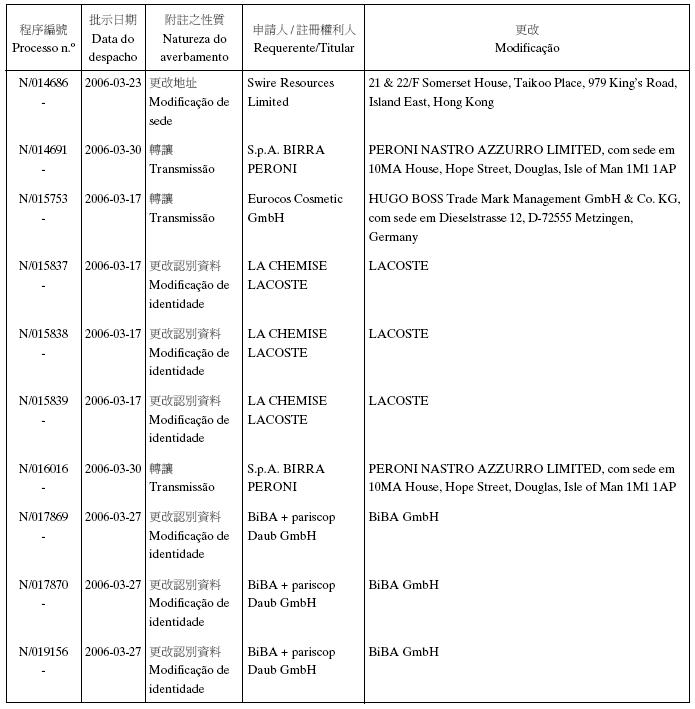 根據於2006 年2 月25 日初級法院之判決,裁判有關上訴理由成立,因此,廢止核准商標註冊之批示。