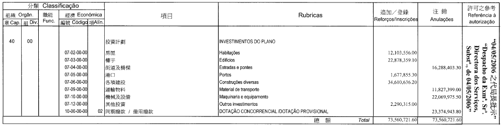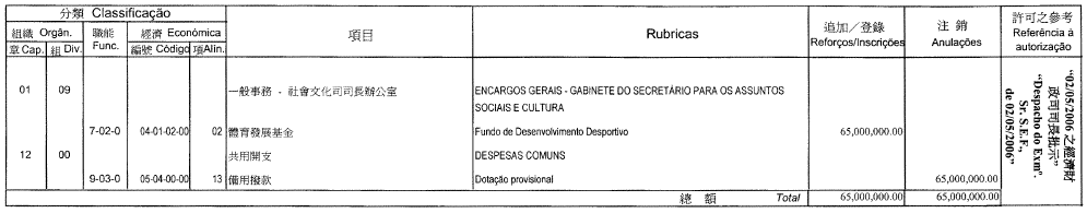 1.ª alteração orçamental da Universidade de Macau, referente ao ano económico de 2006
