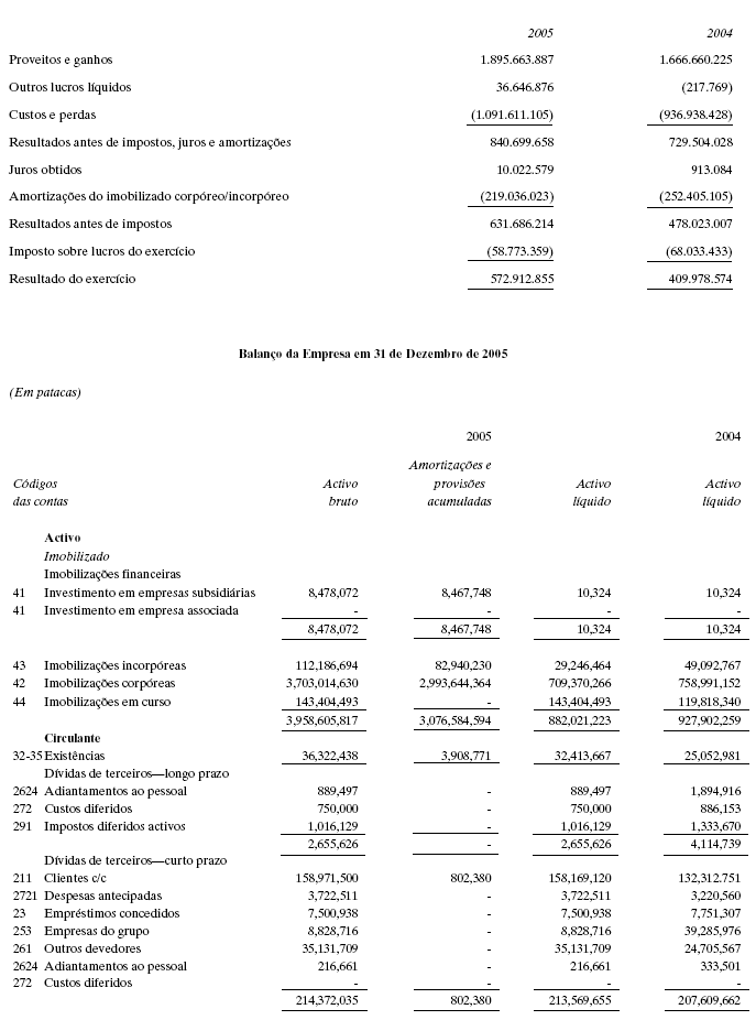 De acordo com o estipulado por Lei e nos Estatutos da Sociedade, vimos submeter à vossa apreciação e votação, na reunião do Conselho de Administração, o relatório e contas relativos ao exercício findo a 31 de Dezembro de 2005, compreendendo o período de 1 de Janeiro a 31 de Dezembro de 2005, durante o qual foram desenvolvidas várias actividades de acordo com as disposições previstas nos estatutos da Sociedade.
