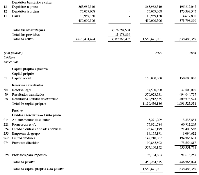 O Conselho Fiscal, com base nos documentos recebidos, emite o parecer de que o relatório e contas relativo ao ano de 2005 reflecte com precisão e objectivamente a condição financeira da empresa e sugere a sua aprovação pelos accionistas.